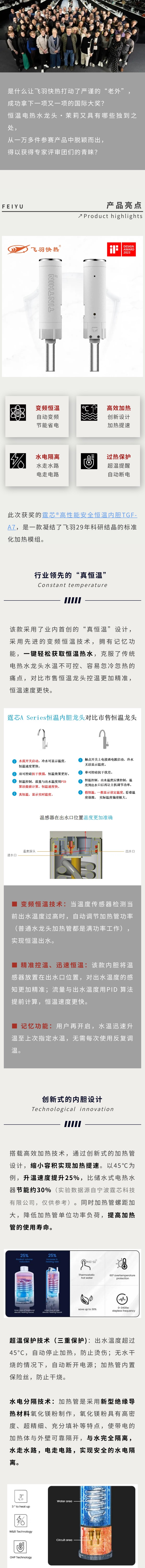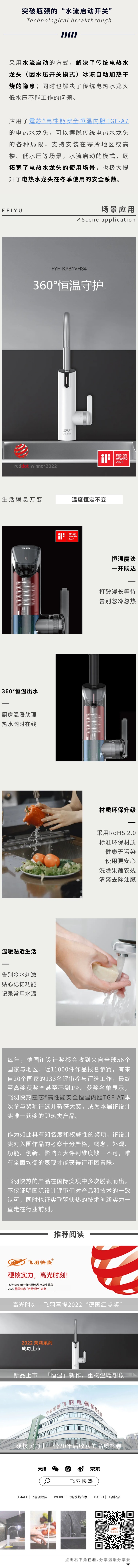 早在2022年,飛羽快熱恒溫電熱水龍頭·茉莉便已斬獲德國紅點產品設計大獎(REDDOT WINNER 2022),成為第一臺榮獲國際獎項的電熱水龍頭;次年,霆芯?高性能安全恒溫內膽TGF-A7榮獲德國iF設計大獎(iF DESIGN AWARD 2023),此次更是國際對于飛羽科研實力的雙重肯定,證明飛羽快熱是電熱水龍頭當之無愧的“行業(yè)引領者”。