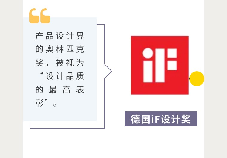 德國iF設計獎被視為“設計品質的最高表彰”,由德國漢諾威工業(yè)設計論壇——德國歷史最悠久的工業(yè)設計機構,于1953年為振興工業(yè)、提倡設計創(chuàng)新而設立的獎項,以“獨立、嚴謹、可靠”的評獎理念聞名于世,被譽為“產品設計界的奧林匹克獎”,是設計師們心向往之的最高榮譽之一。