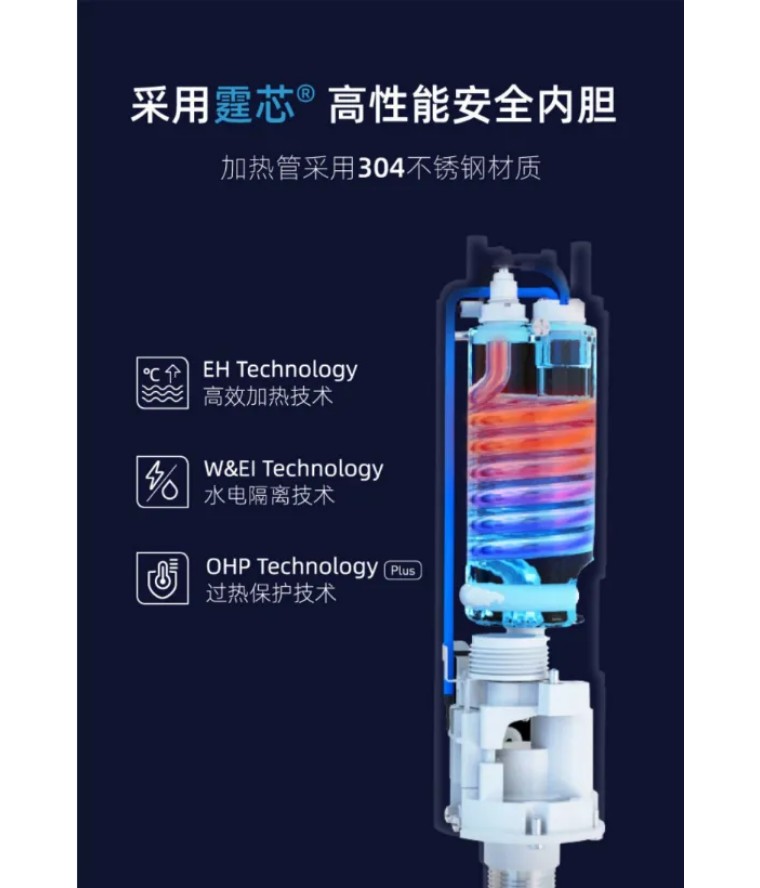飛羽快熱電熱水龍頭,內(nèi)部采用的是霆芯?高性能安全內(nèi)膽,搭載高效加熱技術、水電分離技術和過熱保護技術。其中高效加熱技術,是通過創(chuàng)新式的加熱管設計,縮小容積以實現(xiàn)加熱提速。以45℃為例,采用霆芯內(nèi)膽的電熱水龍頭與市售的傳統(tǒng)電熱水龍頭相比,升溫速度提升了25%(實驗數(shù)據(jù)源自寧波霆芯科技有限公司,僅供參考)。
