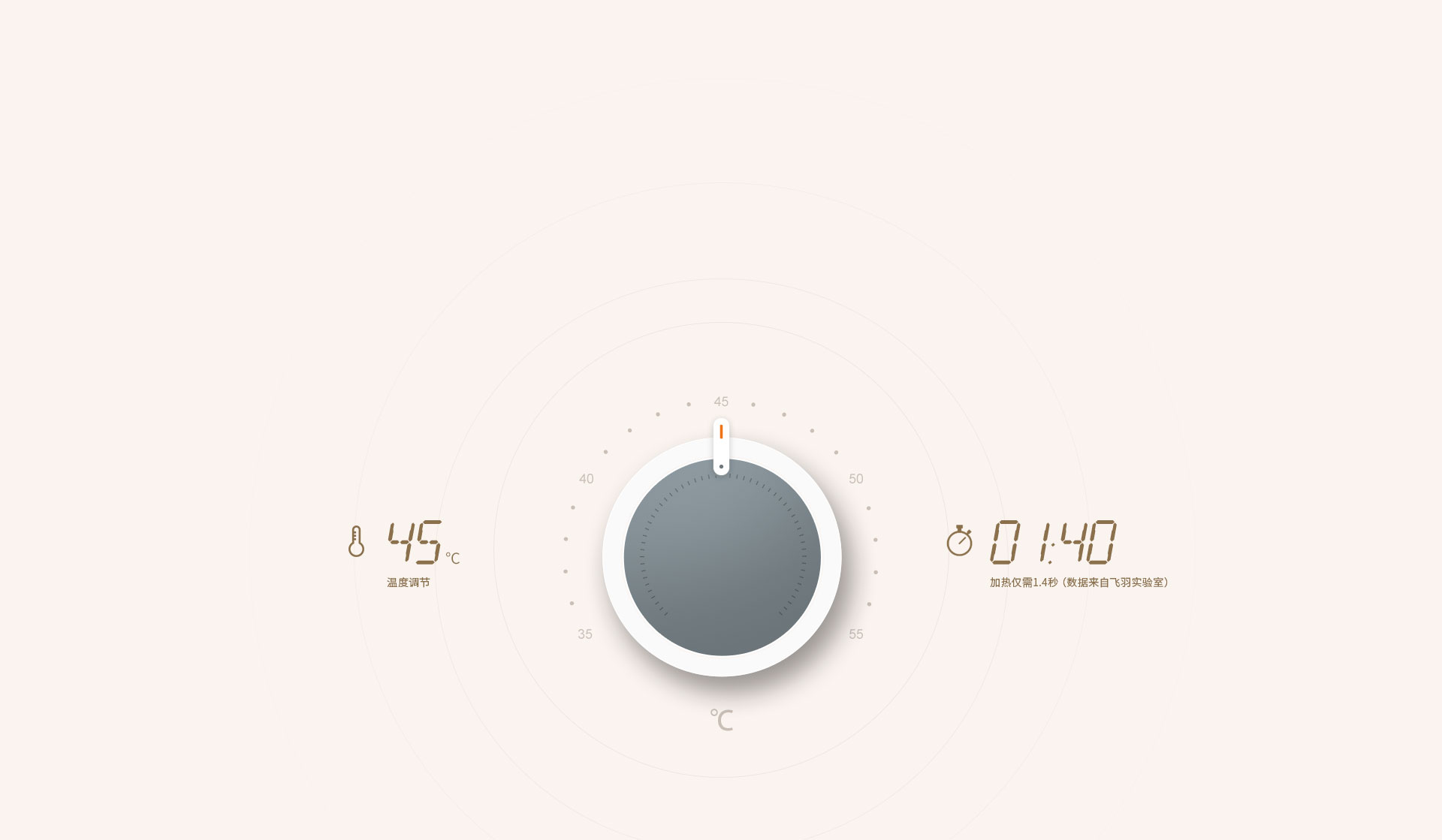 旋鈕指示針對應出水溫度,操控手感舒適,使用簡便明了